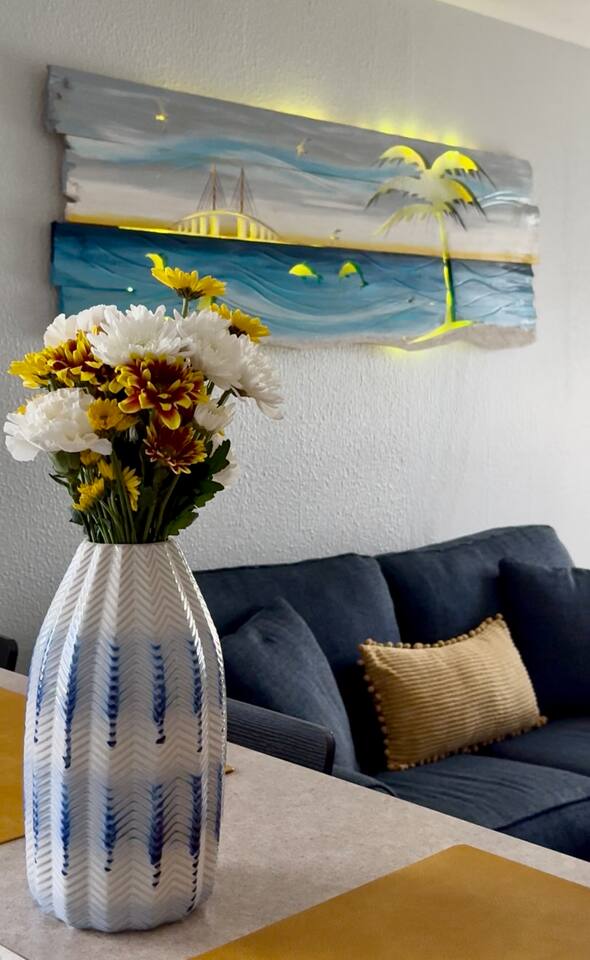 Just pack your swimsuits👙🩴—everything else is provided for your comfort and enjoyment! Key Features: ☀ Self check-in with smart lock ☀ Spacious living area with coastal flare ☀ Open-concept layout ☀ Central A/C ☀ LVP flooring and tile throughout ☀ Brand new glass tile backsplash in the kitchen ☀ Brand new custom 75 inch LED-lit wood artwork crafted by Tim Steller (local artist), featuring Skyway Bridge in the living room ☀ Ceiling fans in all rooms ☀ Pull-out sleeper sofa ☀ Fully equipped kitchen with stainless steel appliances & cookware ☀ Smart TVs with free Spectrum TV service ☀ Wi-Fi included ☀ Coffee station (drip coffee machine with coffee provided) ☀ Dining room table ☀ Tea pot with tea, blender, toaster and slow cooker ☀ Three bedrooms, each with closet, hangers, and fresh linens ☀ Bathrooms with towels and starter toiletries, including bathtub and shower ☀ Washer and dryer with starter laundry pods ☀ Patio seating ☀ BBQ grill w/propane ☀ Cozy gas fire pit and seating out back with marshmallow roasting sticks ☀ Pack 'n Play, high chair, kids' games & books ☀ Kids' tableware & sippy cups ☀ Beach chairs, umbrella, towels, and cooler ☀ Sand toys for kids, boggy board and 2 noodles ☀ Card games & giant Jenga ☀ White Noise Sound Machine in master & White Noise Projector in kids bunk bed room ☀ 2 sets of Pickleball Rackets - use the state of the art pickleball courts at GT Bray Complex, less than 3 miles away ($5 charge for court use) or free waterfront courts at Bayfront Park on Longboat ☀ 2 fishing 🎣 poles & tackle ☀ Free driveway parking (3 cars) ☀ Remote access to fans ☀ Pet friendly ($150 one time pet fee, one dog per reservation, unless approved by host -- additional fees may apply) crate, pet bowls & leash on site Please note: This is a private 3-bedroom unit within a duplex. Opportunity to book entire duplex, if available. Approximate commute time to attractions (can vary based on traffic): 🌴 Historic Cortez Village: 4 min (2 miles) 🌴 Bradenton Beach: 10 min (3.4 miles) 🌴 IMG Academy: 8 min (3.7 miles) 🌴 Coquina Beach: 10 min (3.2 miles) 🌴 Anna Maria Island: 15 min (6.3 miles) 🌴 Bean Point Beach: 24 min (9.3 miles) 🌴 Ringling Museum of Art & New College (NCF): 9.7 miles 🌴 SRQ Airport: 10 miles 🌴 Palma Sola Botanical Park: 13 min (5.9 miles) 🌴 Robinson Preserve: 14 min (6 miles) 🌴 LECOM Park (Pittsburgh Pirates Spring Training Field): 16 min (6 miles) 🌴 G T Bray Aquatic Center (Community Pool and Pickleball Complex): less than 3 miles away 🌴 Riverwalk: 20 min (7.6 miles) 🌴 Siesta Key Beach: 35 min (19 miles) 🌴 De Soto National Memorial: 21 min (9.8 miles) 🌴 Seaflower Development: (currently under construction) 500 ft away - bringing lakes, parks, scenic trails, amphitheater, Publix and restaurants at a walking distance 🌴Pesto Restaurant: 800 ft away ⭐️ SHARED MOMENTS FROM OUR GUESTS "Our stay here was wonderful. Very centralized to other towns. Highly recommend staying here if you need close distance to IMG Academy. Her place was clean, organized, and a great fit for our family. Nicole was responsive the entire stay with great communication. You can tell she truly cares about her guests and their experience. I know we will be back to this area shortly and plan to stay here again." -Brooke "Nicole was top class in hospitality and very prompt at responding, making the check in/out processes so easy. Her attention to detail from the rules/instructions to the beach equipment just shows you how much care she put into providing everything one might need. This has probably been my favorite BnB experience to date." -JJ WHAT MAKES STAYING HERE SPECIAL ❤️I host from the heart! 🤝🏼Self-managed, not property managed! 👍🏼Responsive - real human connection with your host & not AI 🤖 🌟Hospitality driven host! NO POOL 🏊 ? NO PROBLEM! ☀️ While our vacation rental doesn’t have a pool on-site, you can still soak up the sun and enjoy resort-style vibes nearby. Several amazing local resorts offer day passes — giving you access to their waterfront pools, tropical cocktails, and relaxing lounges.🌴💦🍹 🏊♀️ Compass Margaritaville - Bradenton - less than 5 miles 🏊♀️ Palmetto Marriott - Palmetto 🏊♀️ Waterline Villas & Marina - AMI 🏊♀️ Bali Hai Beach Resort - AMI 🏊♀️ AMI Beach Resort - AMI To reserve your spot, visit resortpass . com Insta: @dreamdestinationsfl
